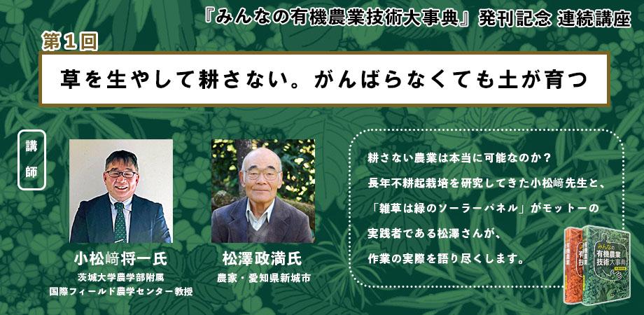 講師:小松﨑将一氏(茨城大学農学部附属国際フィールド農学センター教授)、松澤政満氏(農家・愛知県新城市)