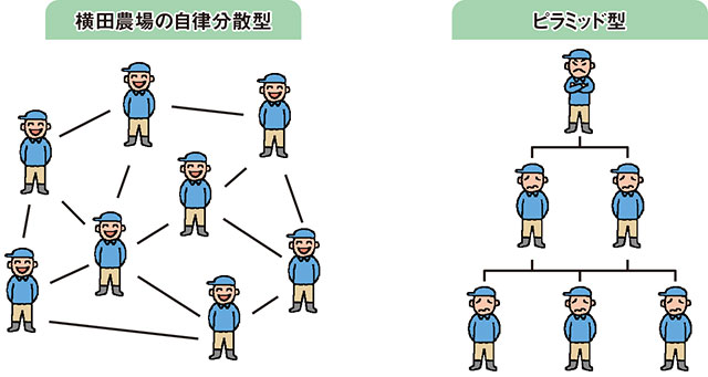 横田農場の「自律分散型」の考え方。強力なリーダーが引っ張るのではなく、職員各々が考え、助け合って仕事を作る