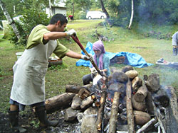 ☆「穴を掘ったり石を焼いたり、みんなでワイワイガヤガヤと楽しい」