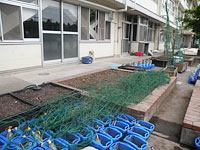 前年の土の残りは一年生のプランターに入れてアサガオの栽培に、さらに余っていれば六年生のジャガイモ畑で使っている。