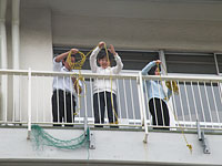 (9)4階から見下ろすとこんな感じ。ピンと張られていて、これなら風が吹いてもゆらゆらしない!