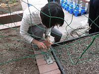 ネットが安定しないと、わき芽が安心して伸びてくれない。上下をしっかりと固定し、びしっと張るのがだいじ。(次頁参照)