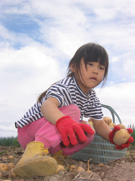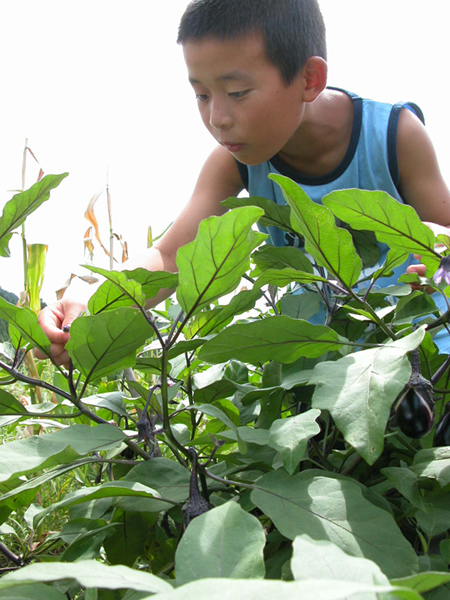 【子ども】ナスの収穫(長尾伸二撮影) |