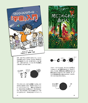 ポップなイラストで楽しく読める『天才少年オリバーの「宇宙」入門』、中学生のマリアとアリ、オランウータンのジンジャー、三者の視点でインドネシアの環境問題を描く『閉じこめられた「森の人」』 の2点。