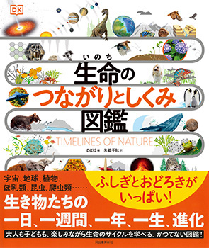 太陽、地球、植物、ほ乳類、昆虫、魚、爬虫類など、あらゆる生命の一生、1日、成長、進化がわかる、驚きとふしぎでいっぱいの図鑑。